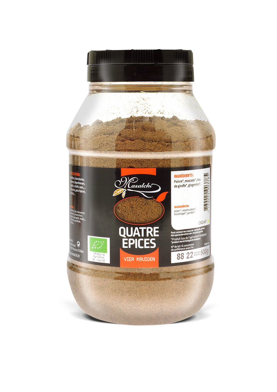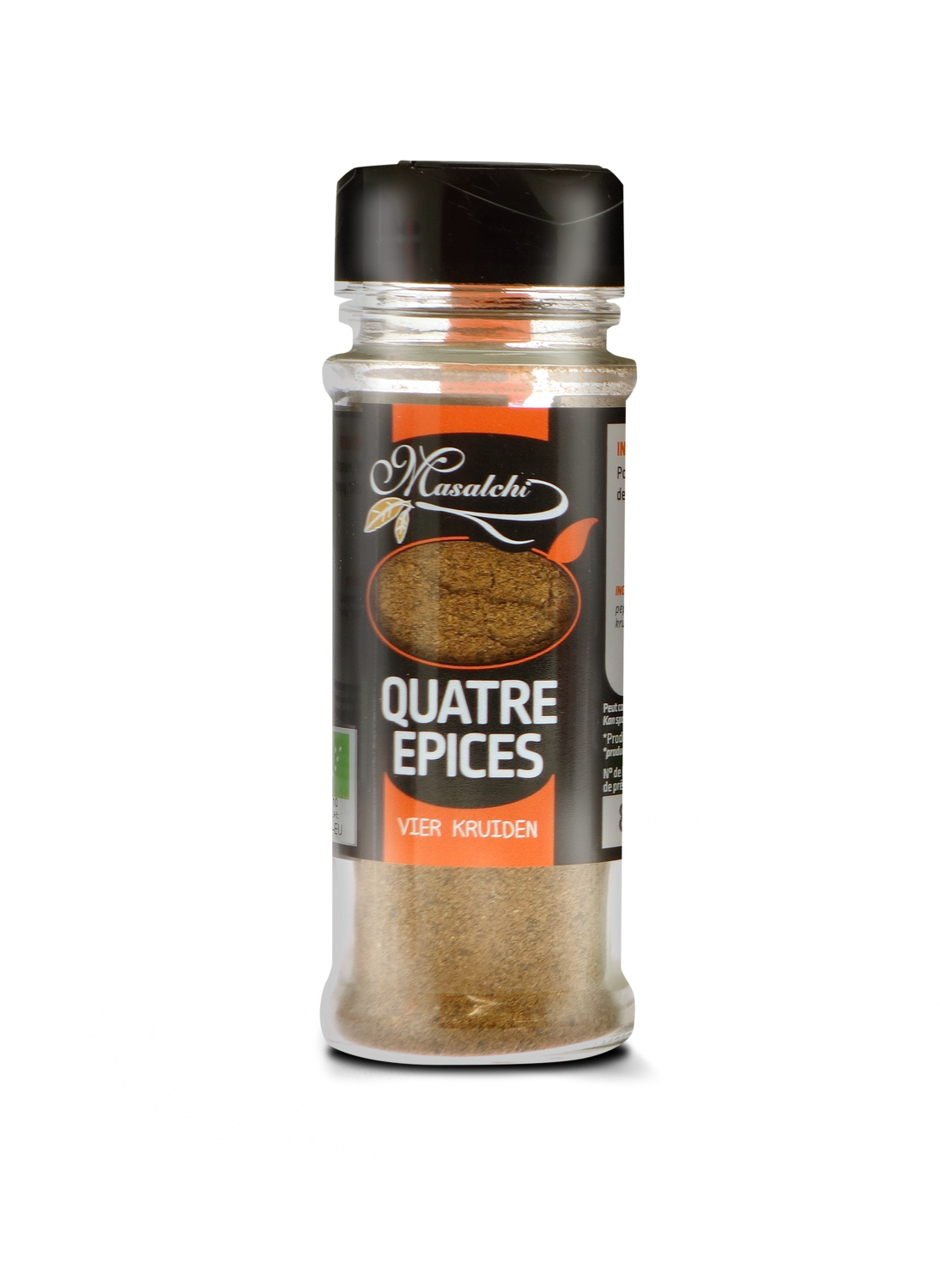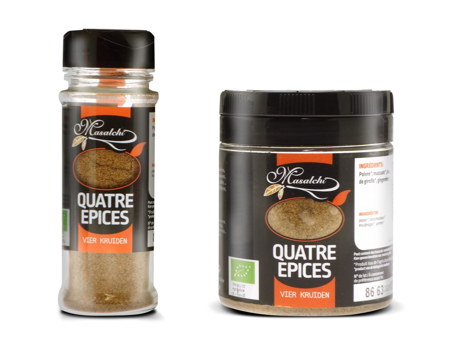 Poivre*, Muscade*, Girofle*, Gingembre*.