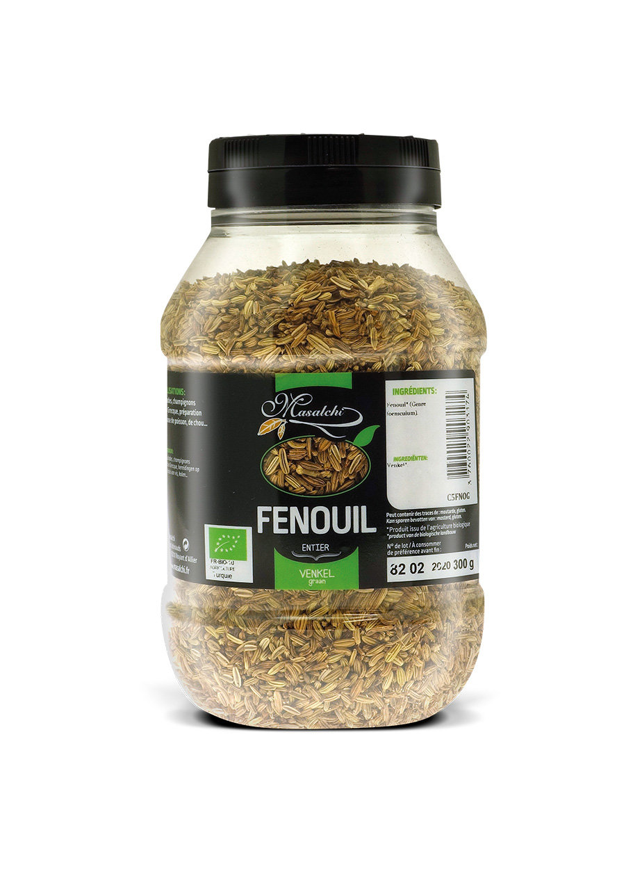 En graine ou en poudre, la saveur anisée un peu camphrée du fenouil se marie idéalement avec les poissons, salades, choux et champignons. Parfait en infusion digestive.