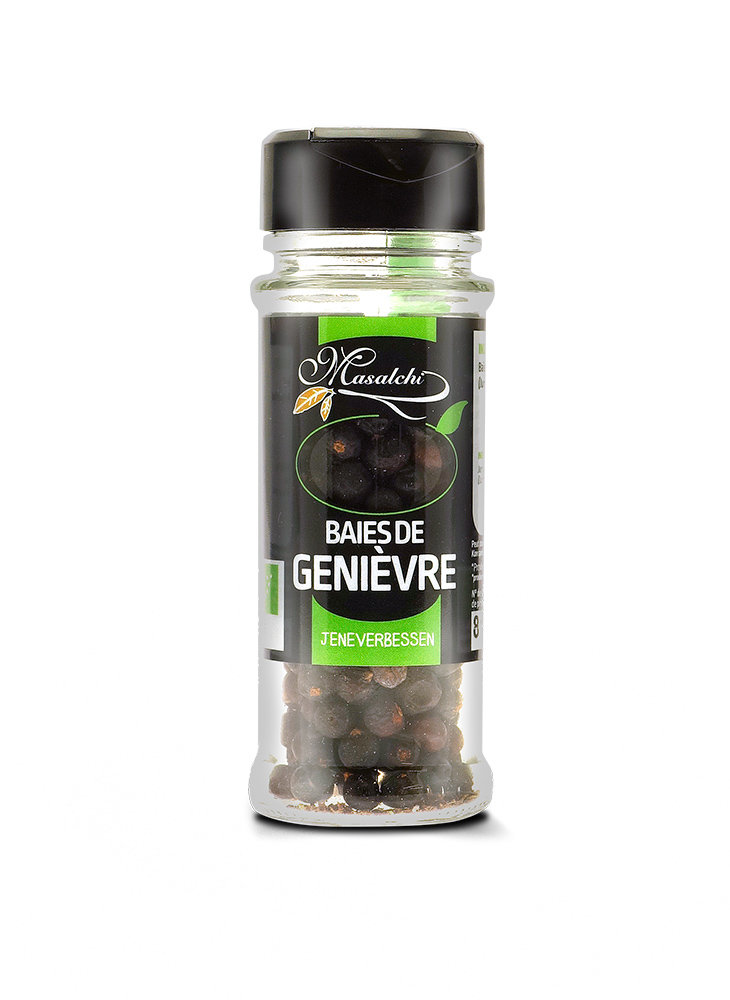 Son parfum piquant et épicé, sa saveur résineuse et sucrée agrémentent les viandes marinées, les choucroutes, les farces, la charcuterie, les poissons et volailles.