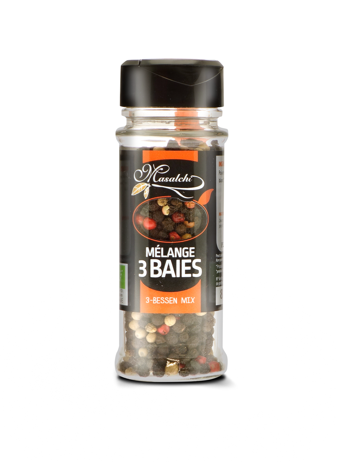 Poivre noir*, Poivre blanc*, Baie rose*.
