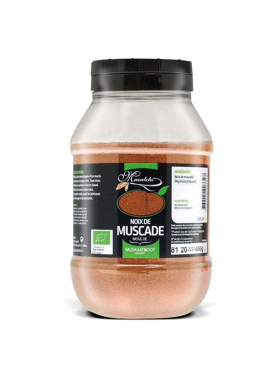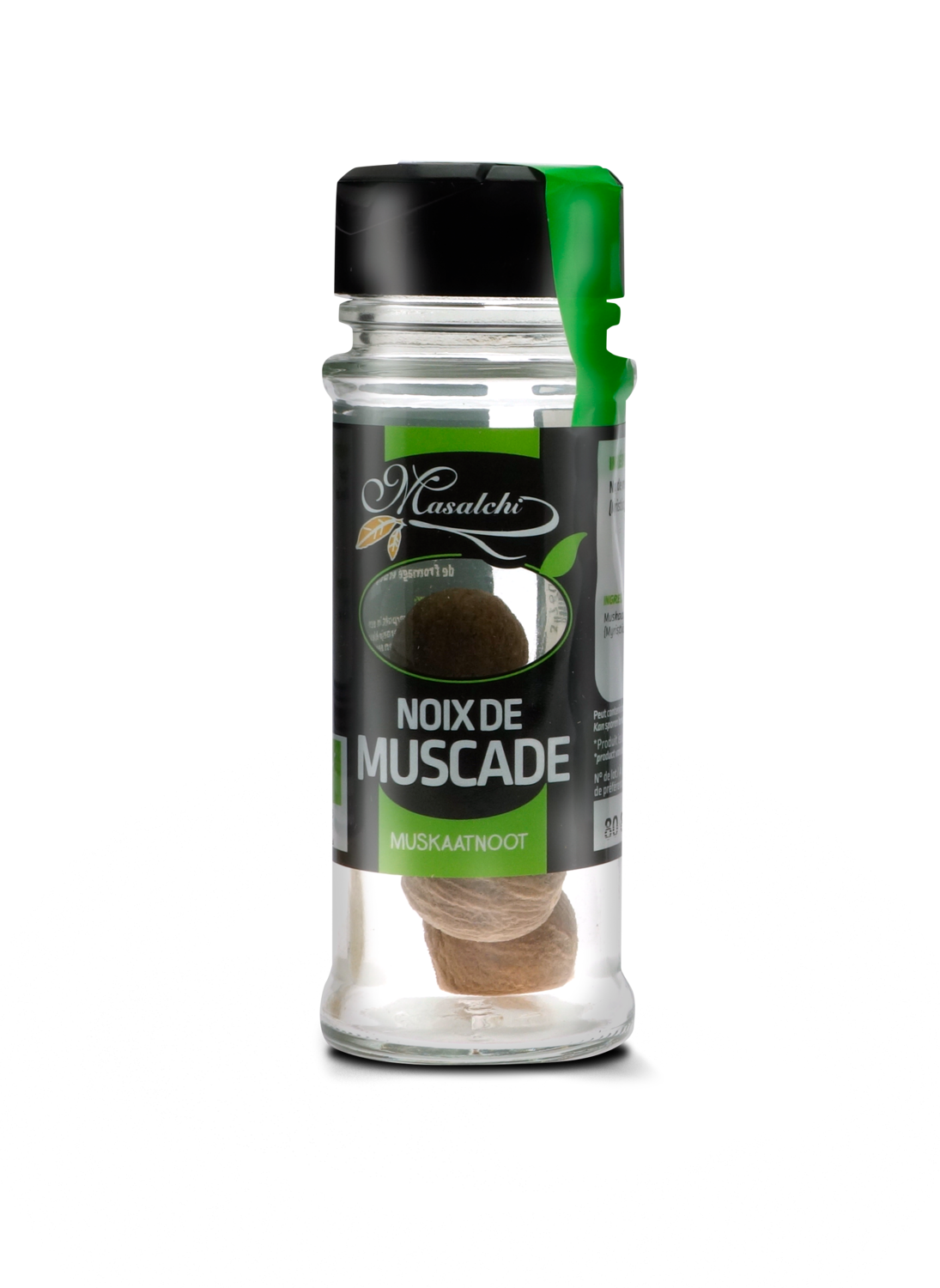 Fruit du muscadier, la noix de muscade est enveloppée d’un macis de couleur orange vif. Composante essentielle de multiples currys, sa saveur riche et chaude relève les sauces blanches, les purées, les poissons et les plats à base de fromage.